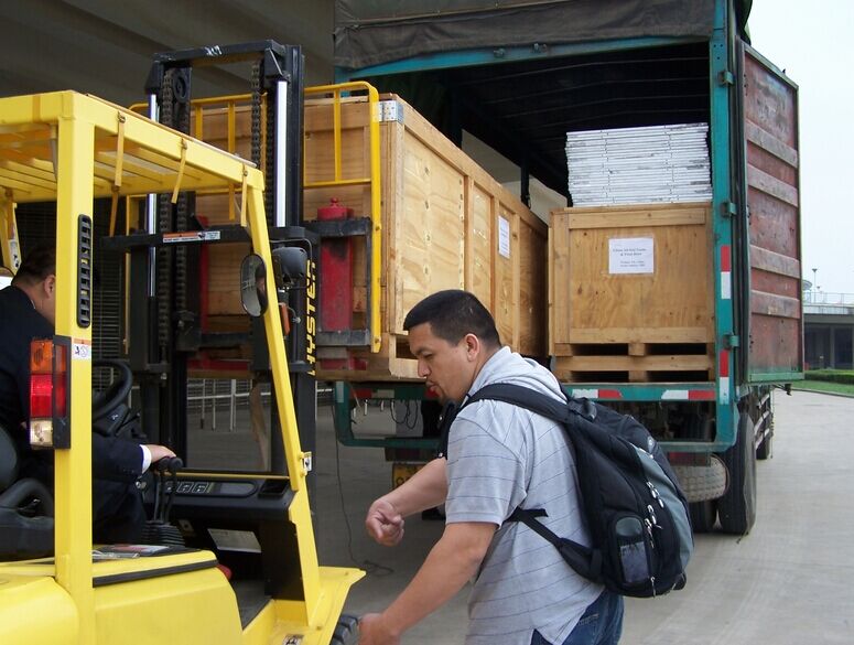 4、最后將風淋室裝訂于木箱中,用吊車叉起送入運輸工具去。