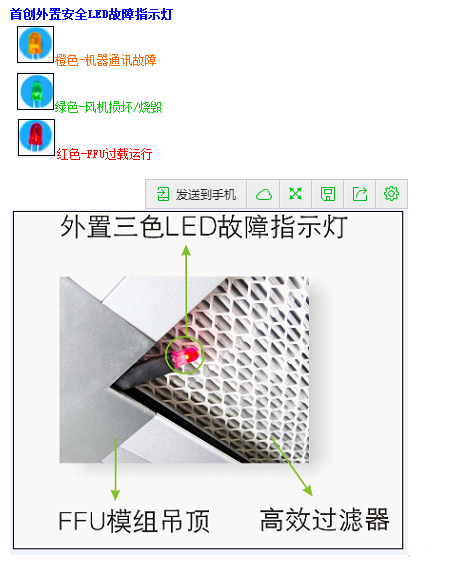 FFU外置安全LED指示燈可以快速測出FFU通信故障,風機損壞,過載運行等功能.