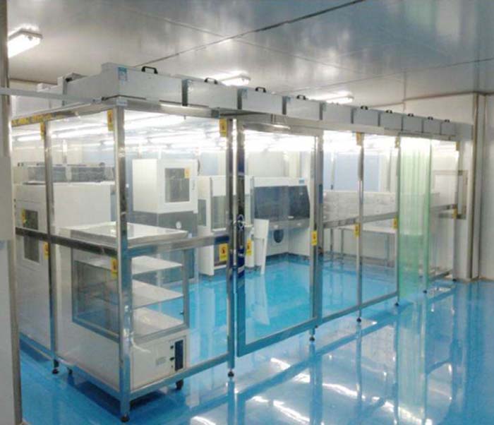 潔凈棚FFU及高效過濾器放置在由放在不銹網(wǎng)支架支撐棚架的托框上。頂部由盲板鋪蓋,密縫嚴(yán)密,四周用防靜電簾圍縫,四周底部利用正壓自然排風(fēng)等形式,使?jié)崈襞飬^(qū)內(nèi)潔凈度達(dá)到1000級。潔凈棚其具有安裝快速、施工周期短、價(jià)格低廉、移動方便等特點(diǎn),如流水線作業(yè)區(qū)域,高精確度產(chǎn)品組裝區(qū)。
