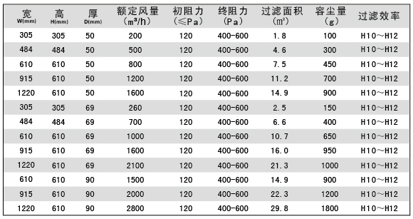 選購(gòu)指南-無(wú)隔板亞高效過(guò)濾器技術(shù)參數(shù)