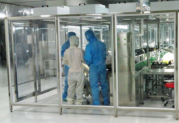 工作人員在潔凈棚中工作